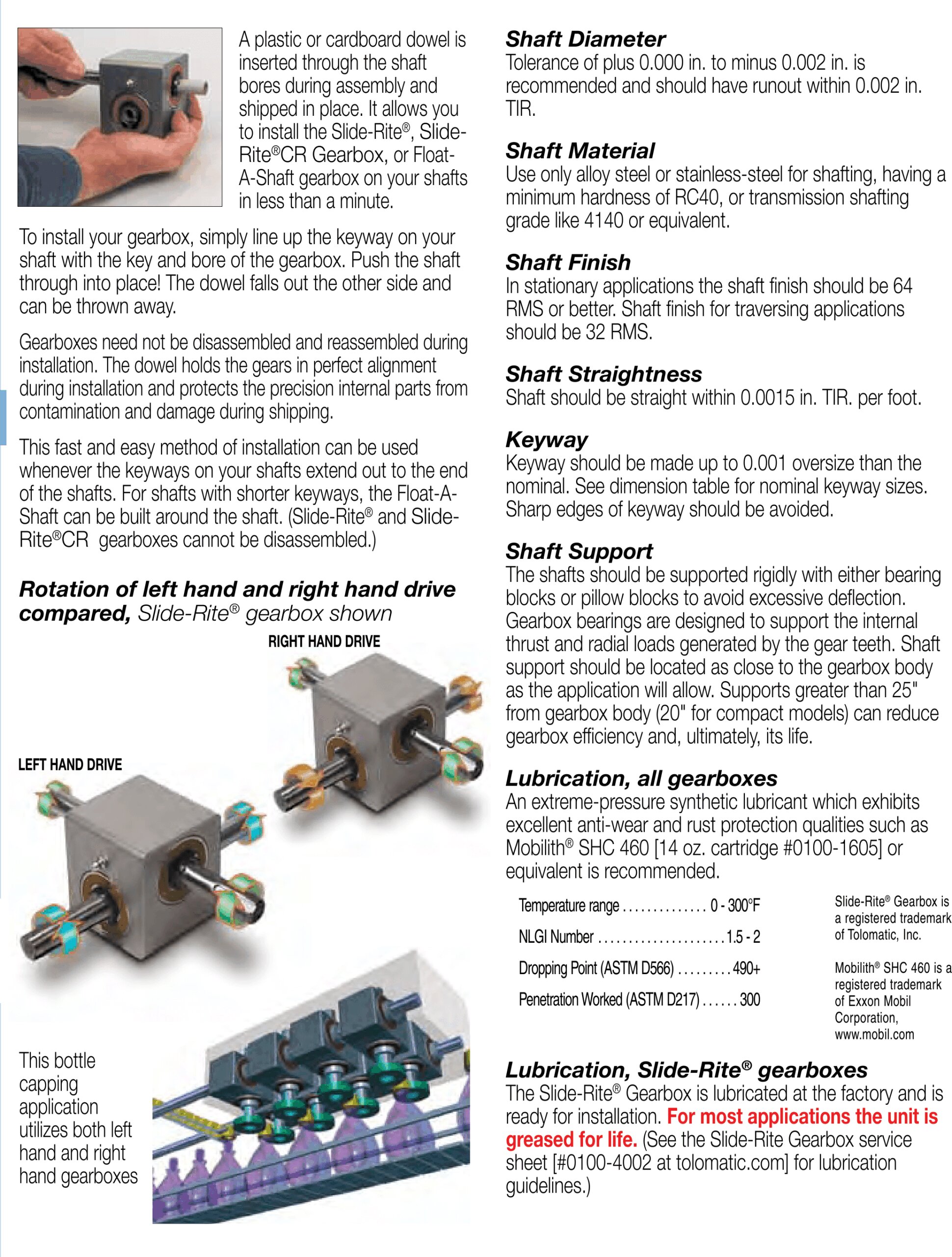 Das kompakte, rechtwinklige Float-A-Shaft Getriebe bietet ein maximales Drehmoment von 49,7 Nm (440 in-lb).