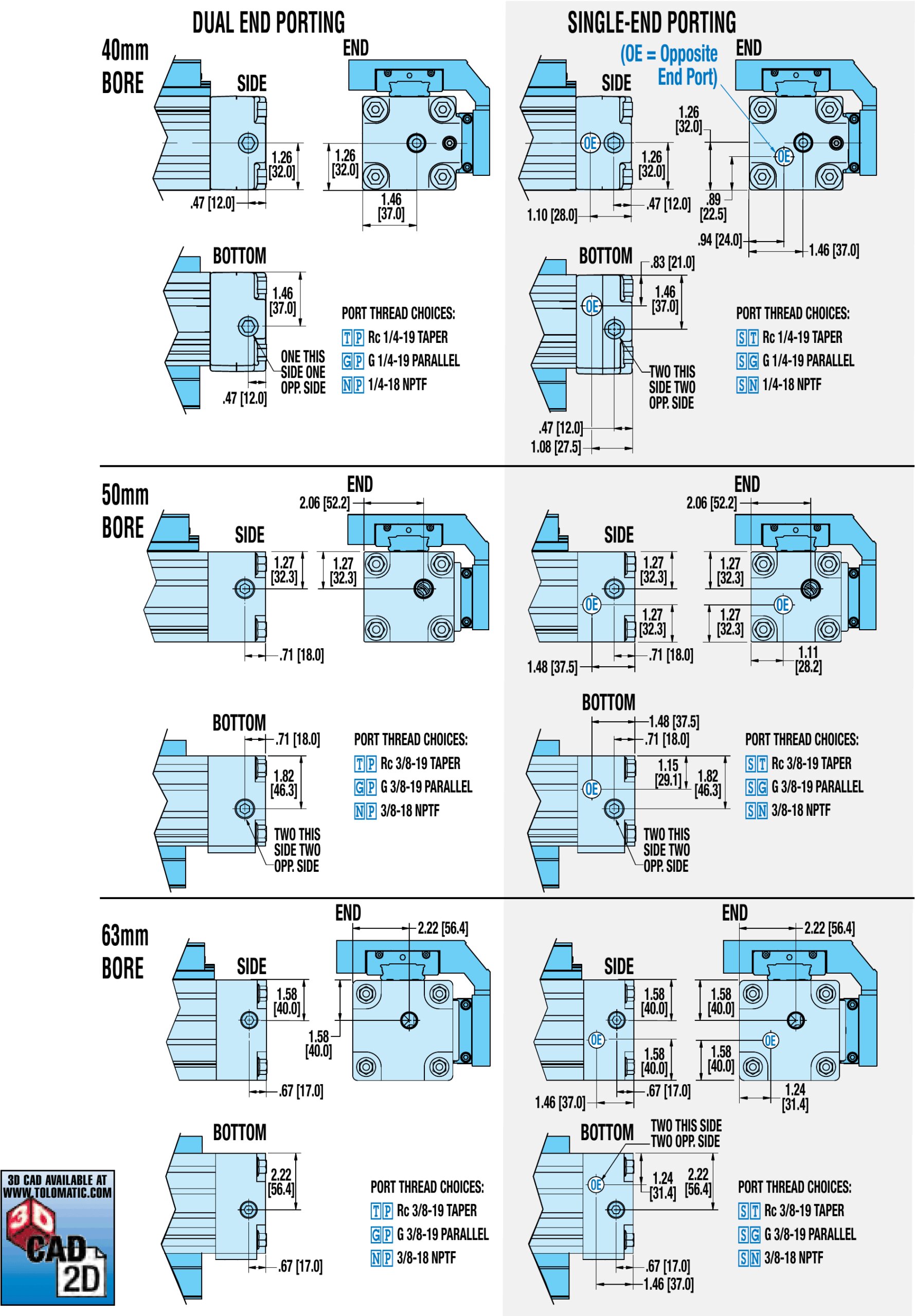 MXP-P 40/50/63 Ein- und Auslasskanäle, Abmessungen