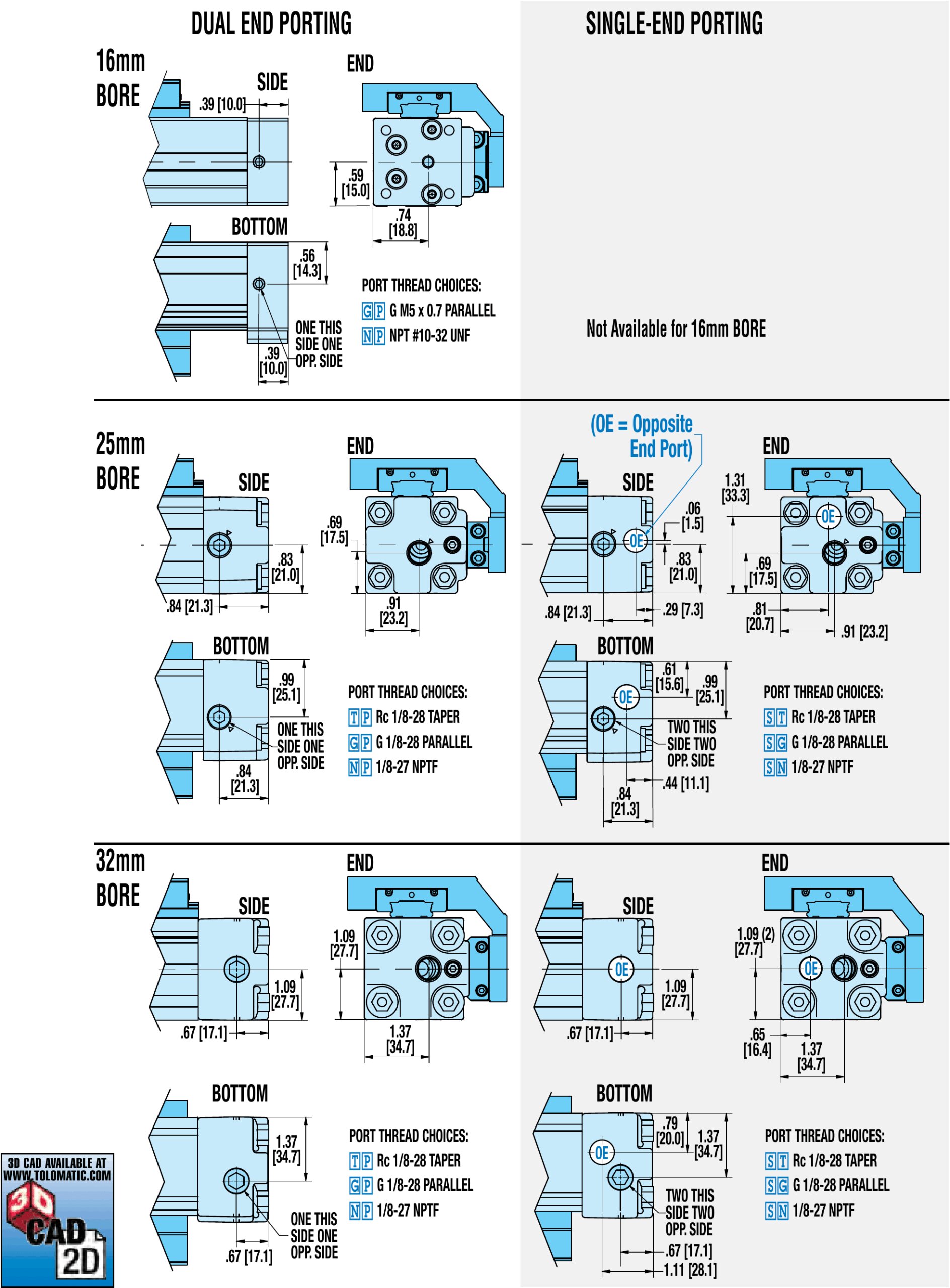 MXP-P 16/25/32 Ein- und Auslasskanäle, Abmessungen