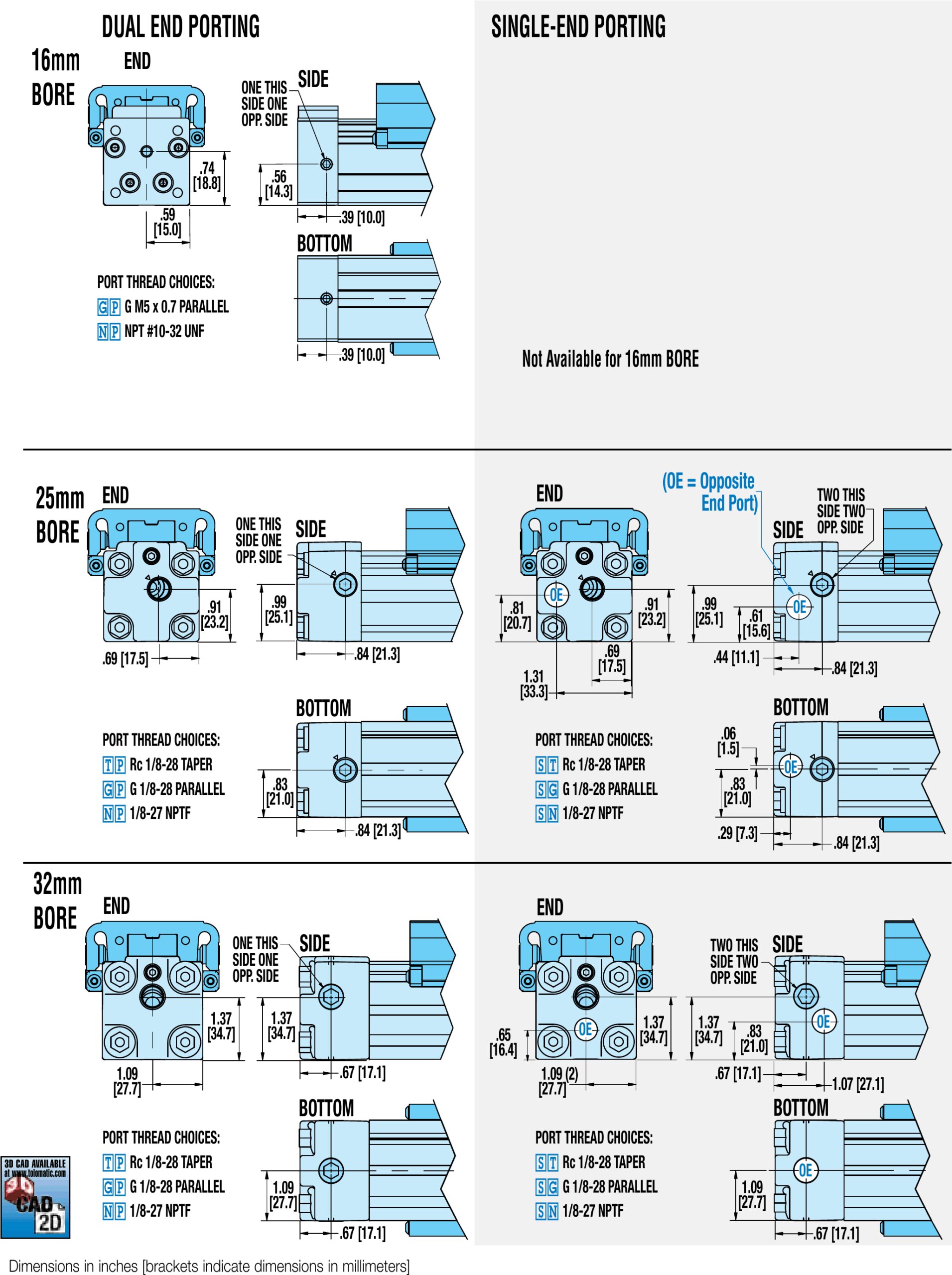 MXP-S 16/25/32 Ein- und Auslasskanäle, Abmessungen