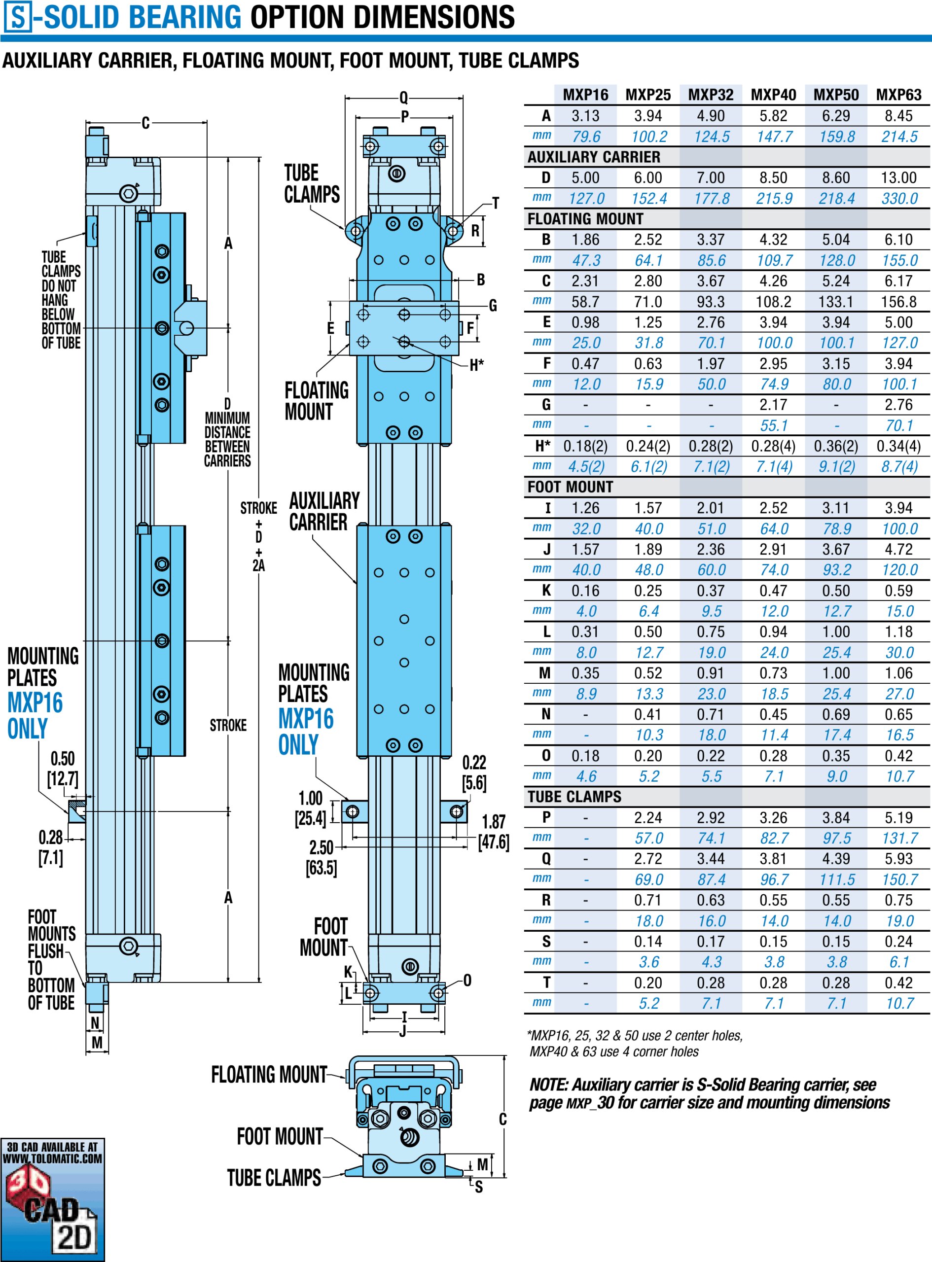 Der pneumatische MXP-S Druckluftzylinder mit Festlager und großer Hublänge von Tolomatic verfügt über eine große Träger-Montageschablone für eine hohe Laststabilität.