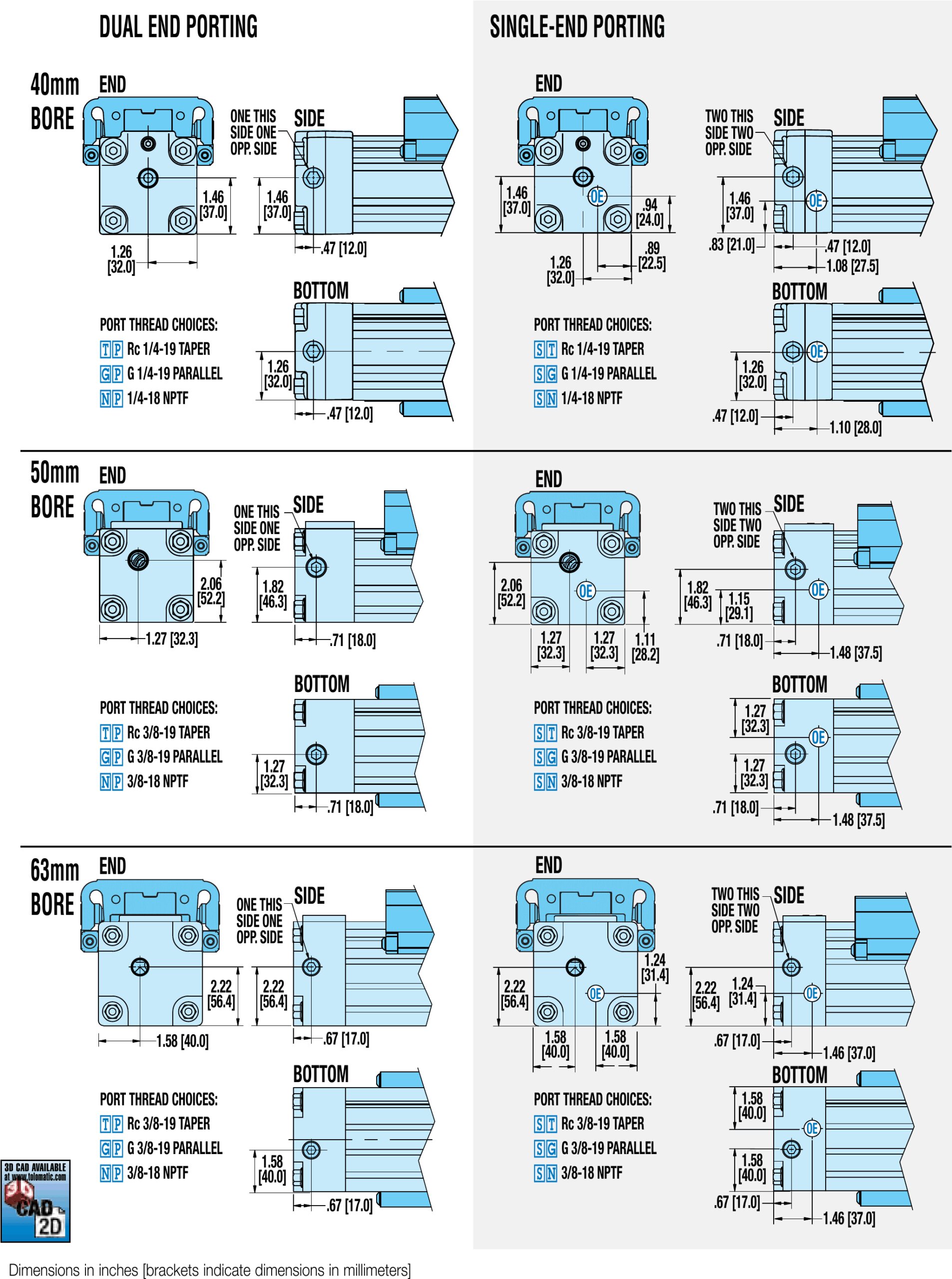 MXP-S 40/50/63 Ein- und Auslasskanäle, Abmessungen