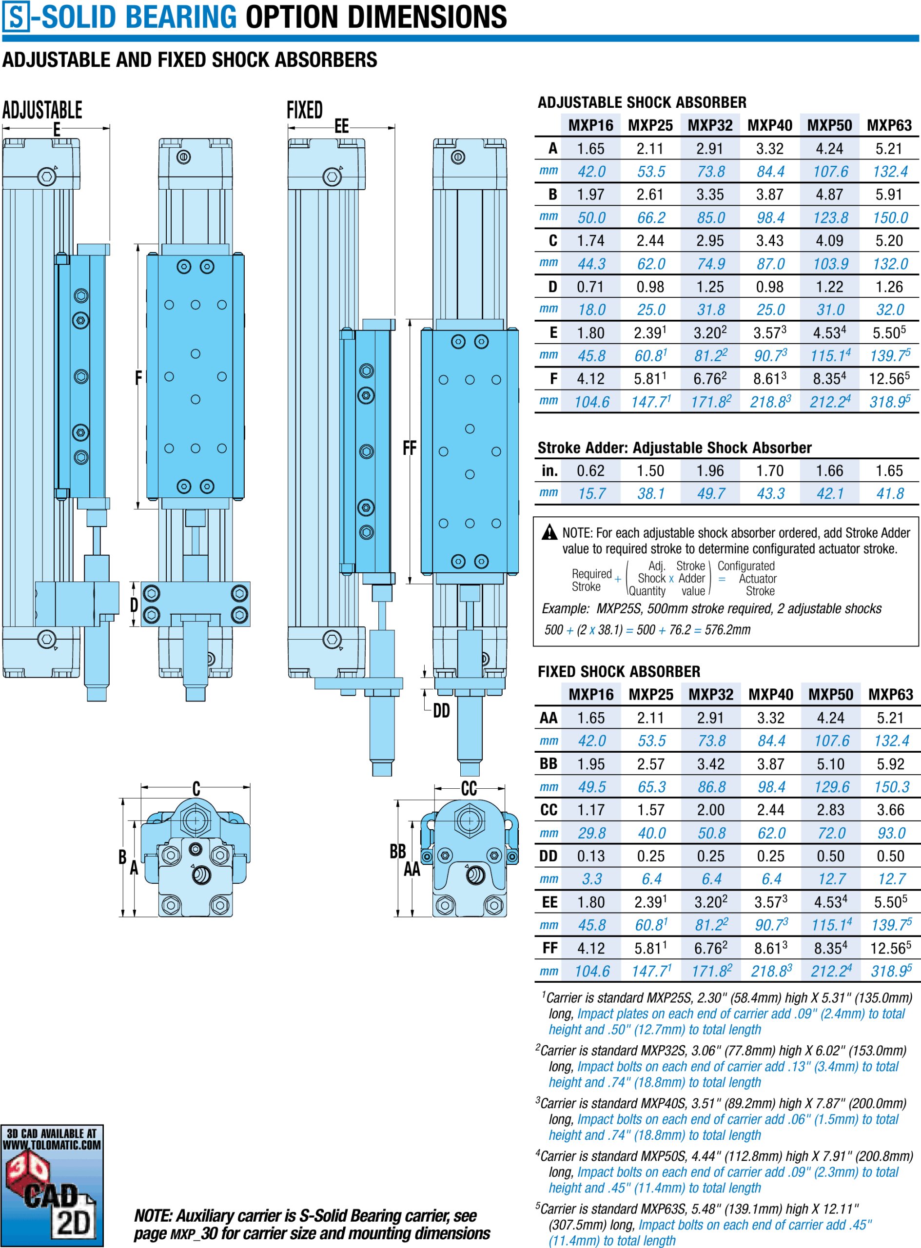 MXP-S Einstellbare und feste Stoßdämpfer, Abmessungen