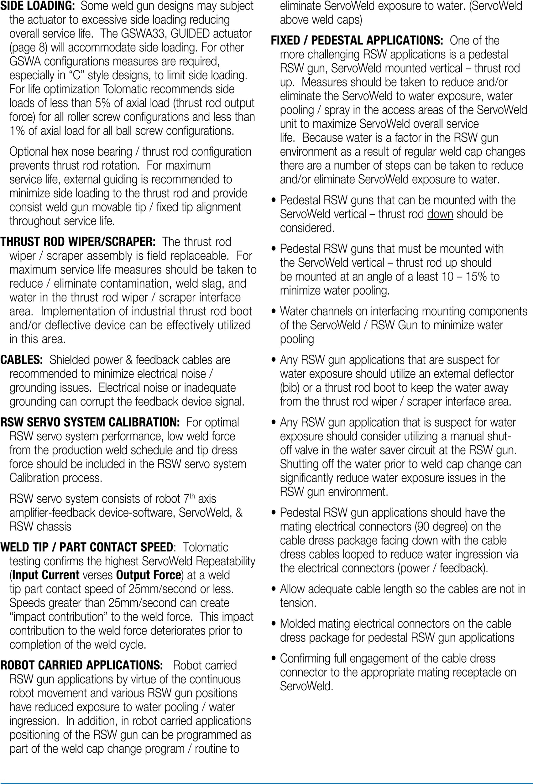 ServoWeld® GSWA, Anwendungsrichtlinien