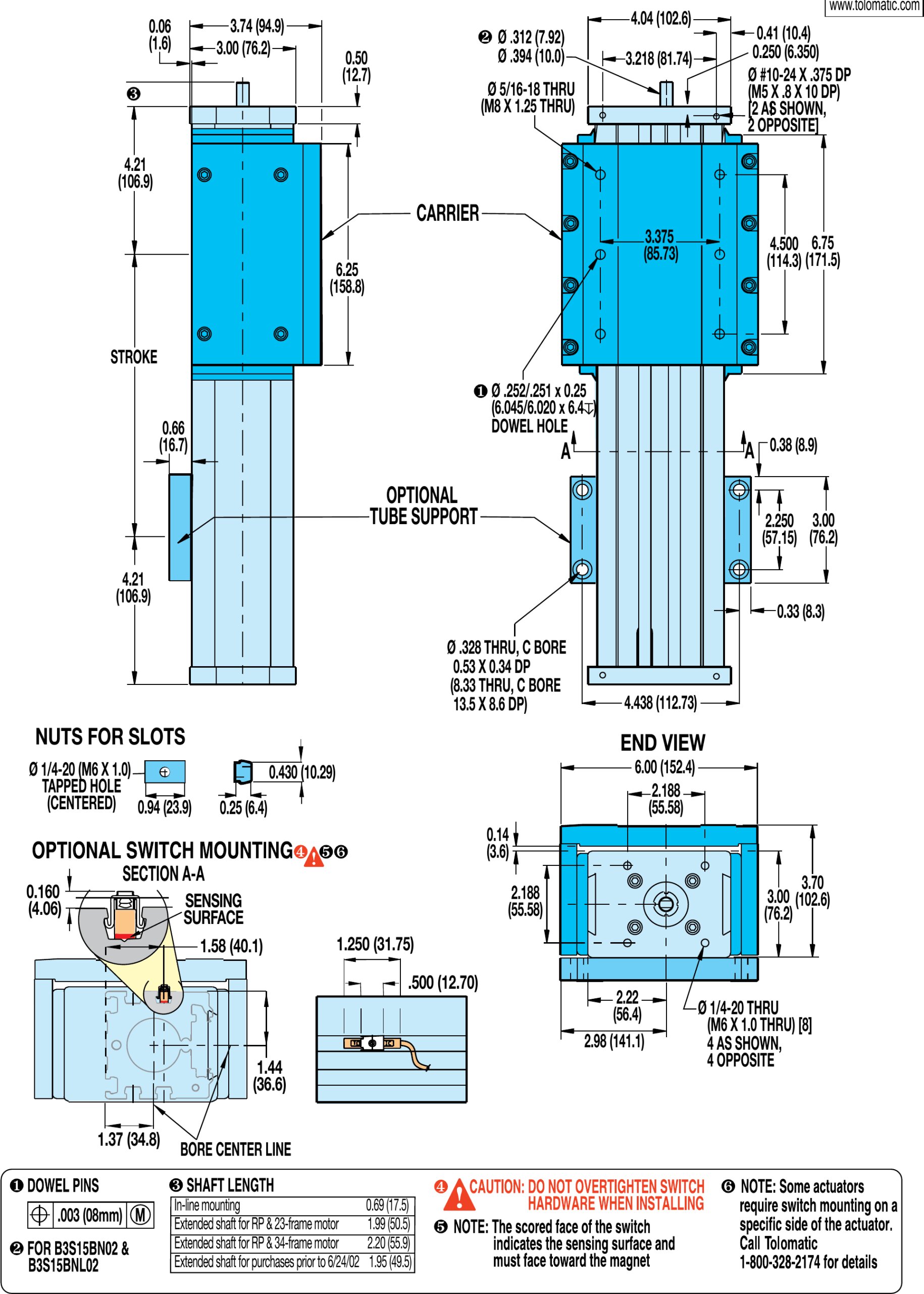 B3S15 Actuator & Options Dimensions