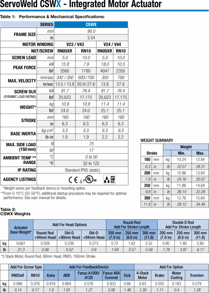 - CSWX ServoWeld Actuador Compacto (^ES, Spanish translation, CSWX brochure)