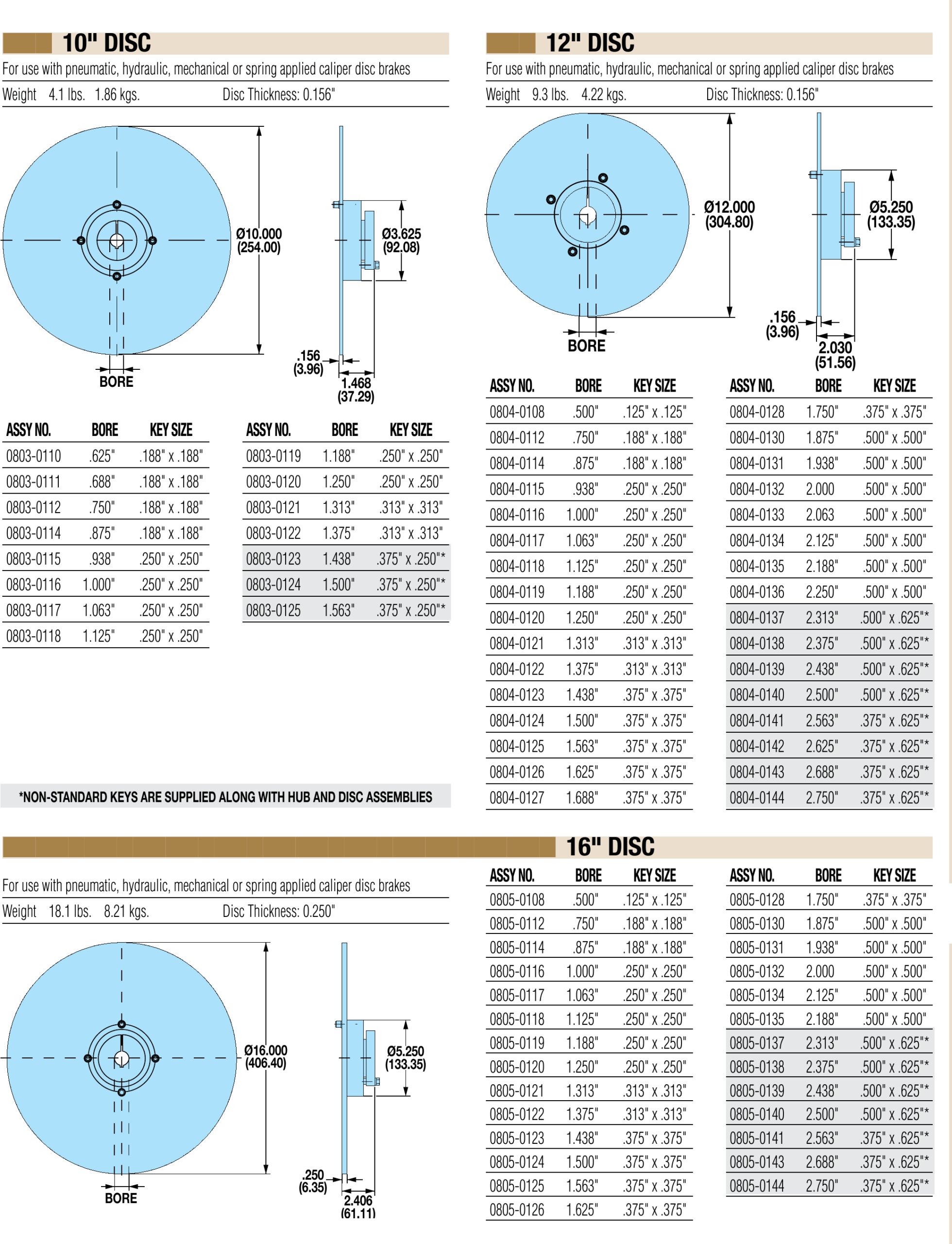 Fixed Hub & Disc Assemblies Specs & Performance Data