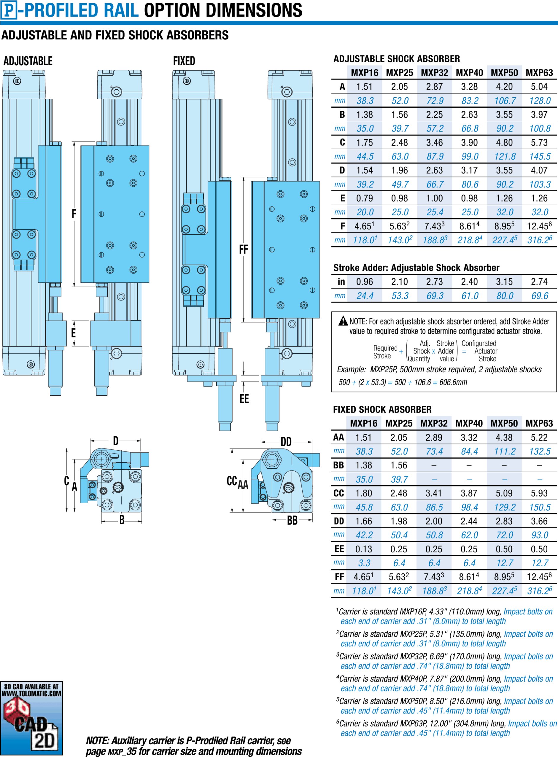 MXP-P Adjustable and Fixed Shock Absorber Dimensions