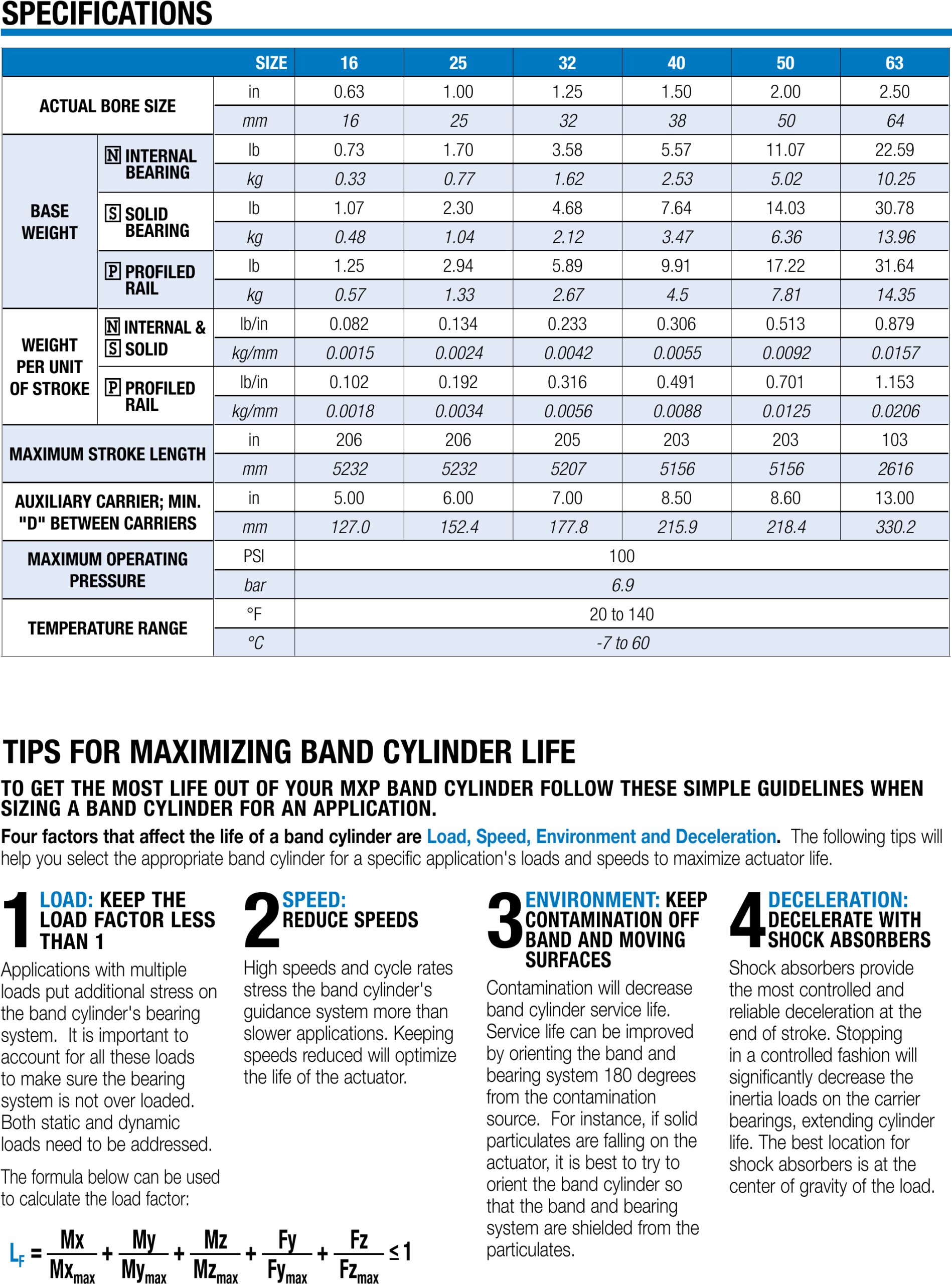 The Tolomatic MXP-P profiled rail air actuators offer the highest load carrying capacity of the MXP actuator line (over 1200 lbf or 5745 N).