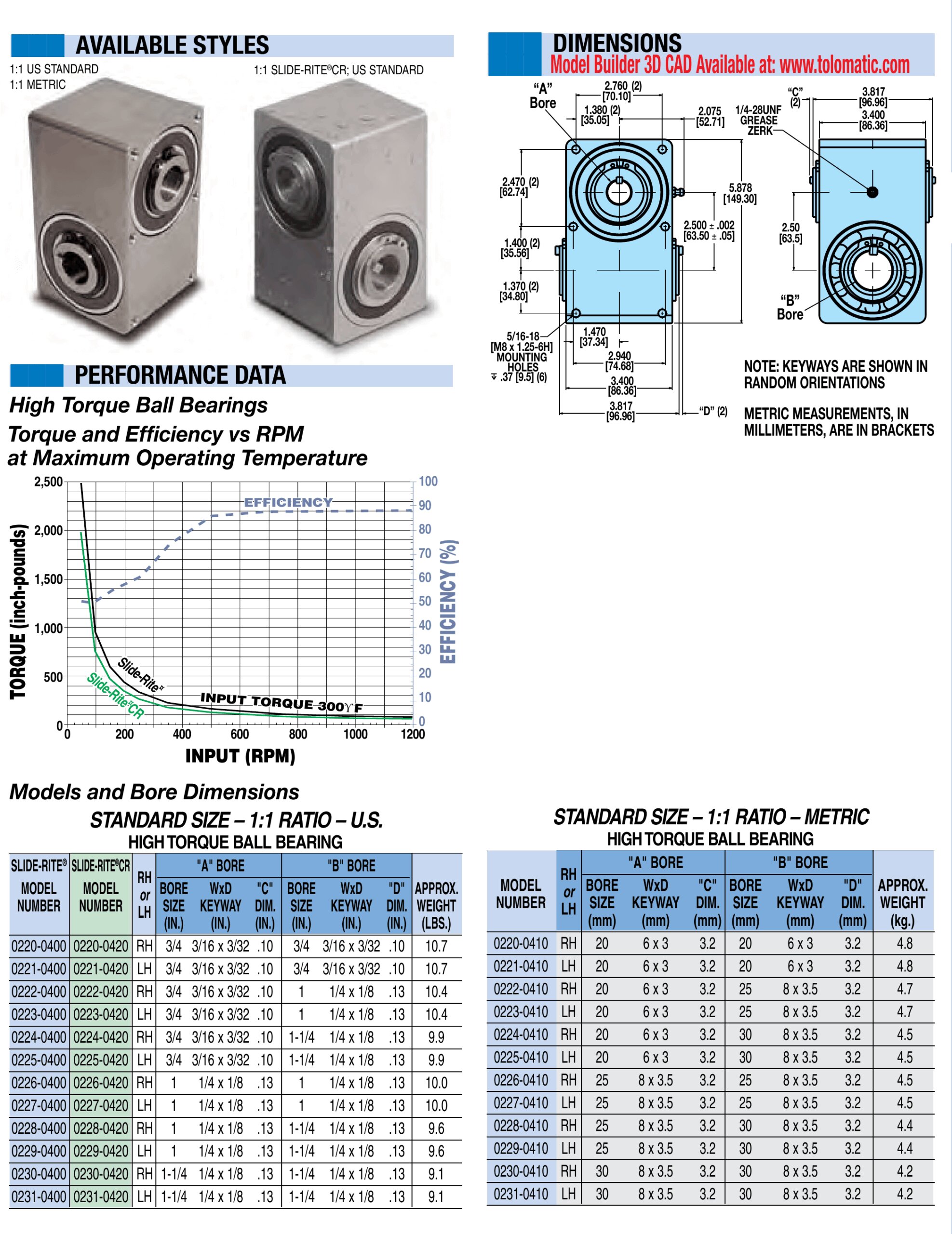 Slide-Rite CR: Standard 1:1 Specs & Dimensions